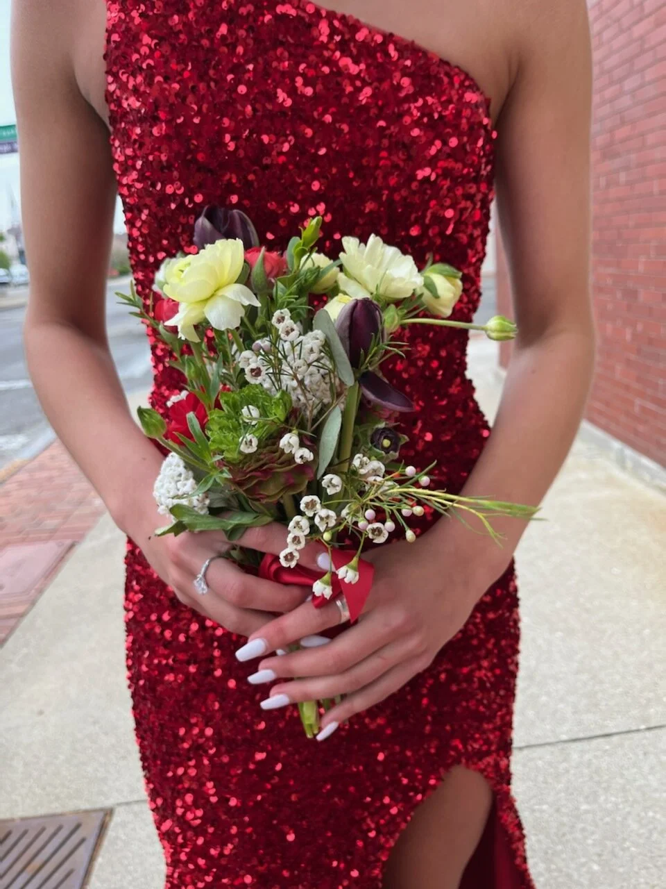 This is a fun alternate to the traditional corsage wristlets… get her the unique handheld bouquet to coordinate with her dress and we will design especially for the occasion. This is a sweet petite hand-held nosegay, just the right size for a young lady and designed with our specialty blooms to make an ultra feminine statement.